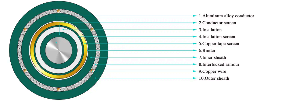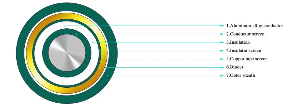 ·Enkeltleder XLPE-isoleringsstrømkabel til nominel spænding fra 3,6/6kV~26/35kV