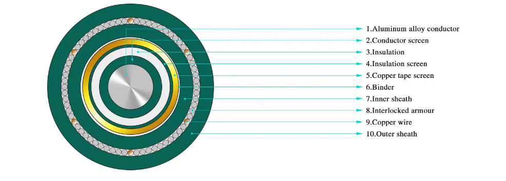 · Enkeltkernet XLPE-isolering ståltrådsarmeret strømkabel til nominel spænding fra 3,6/6kV~26/35kV
