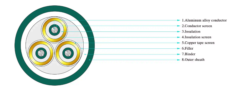 · Trelederet XLPE-isoleringsstrømkabel til nominel spænding fra 3,6/6kV~26/35kV